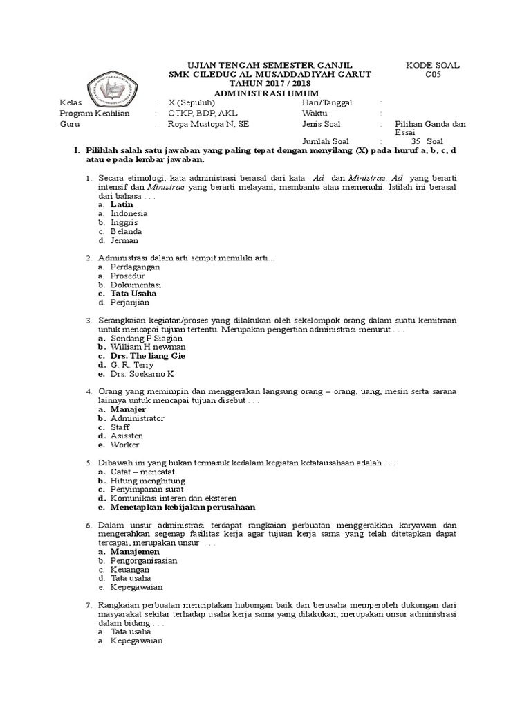 Doc Soal Pengantar Adm Perkantoran Barli Halim Academia Edu. Informasi mengenai Contoh Soal Administrasi Umum Kelas 10. Doc Soal Semester Administrasi Umum Habibah 01 Academia Edu.