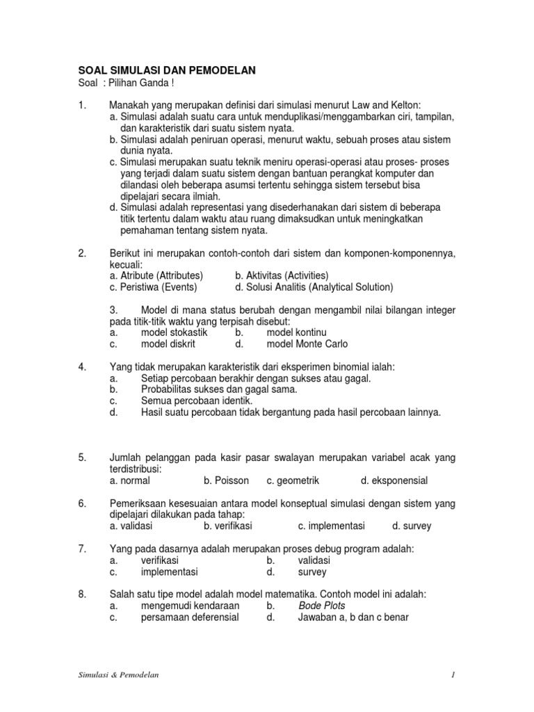 Catatan Kuliah Simulasi dan Pemodelan. Kekurangan simulasi 1. Sobat bisa mencoba mengerjakkannya terlebih dahulu baru kemudian mencocokan jawaban yang telah kami sediakan.