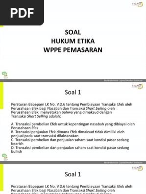 Pada saat permintaan beli dan penawaran jual bertemu melalui sistem komputer B. Soal Try Out Wppe Pemasaran Revisi 071216 Soal try out wppe pemasaran revisi 071216 pdf soal try out wppe instagram photo and video on instagram wppe reguler latihan soal wppe pemasaran modul mekanisme perdagangan efek teleticmi youtube incar kenaikan investor pasar modal jumlah broker perlu ditambah wppe. Perusahaan Efek kecuali anggota Bursa Efek B.