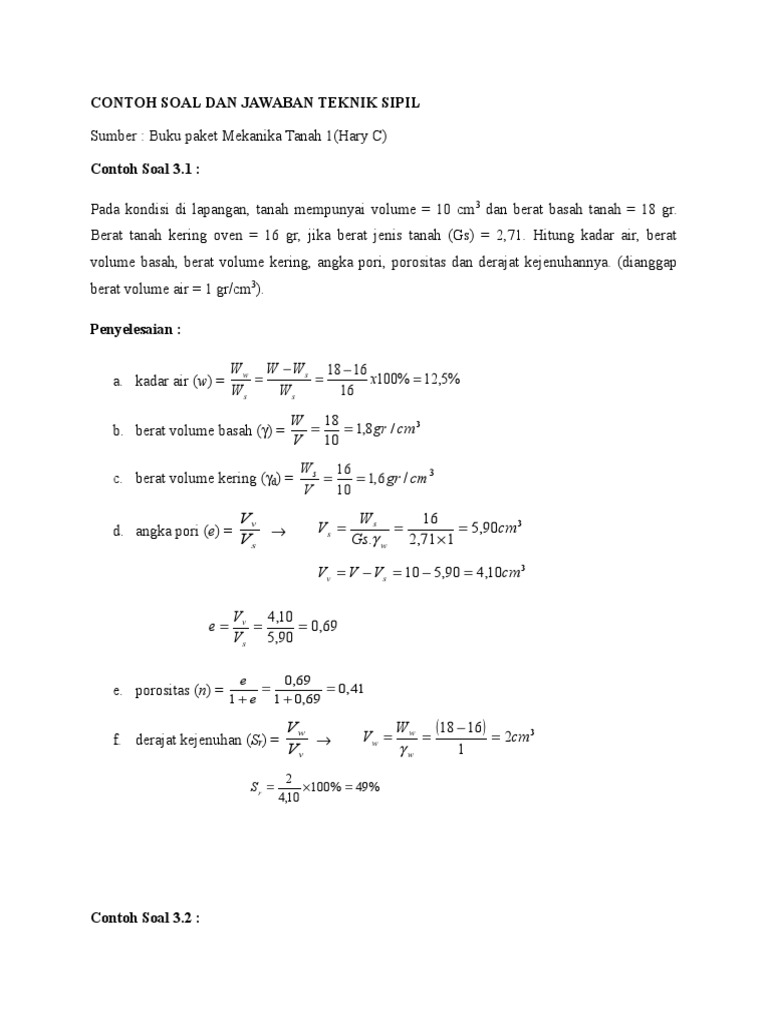 240134484 Contoh Soal Dan Jawaban Mekanika Tanahdoc. Waktu yang diperlukan lapisan tanah untuk penurunan 90 selesai adalah. CONTOH SOAL DAN JAWABAN TEKNIK SIPIL Sumber.