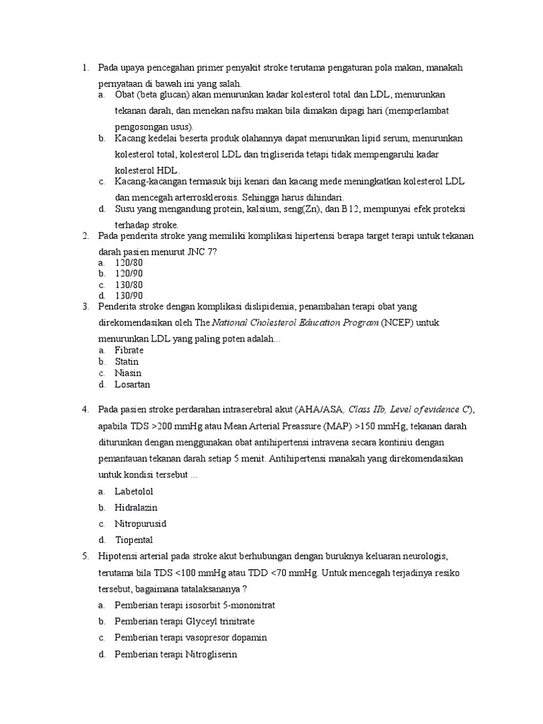 Kumpulan soal kasus stroke. Jawaban soal belajar dari rumah tvri 14 agustus 2020 sd kelas 1 3. Kurang dari 24 jam e. 7 Pada beberapa kasus stroke usia remaja faktor keturunan merupakan penyebab utama terjadinya stroke.