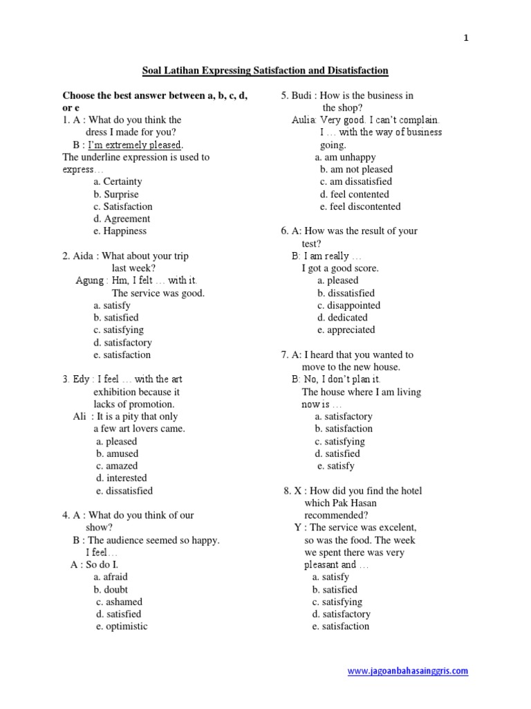 Soal Latihan Expressing Satisfaction And Disatisfaction