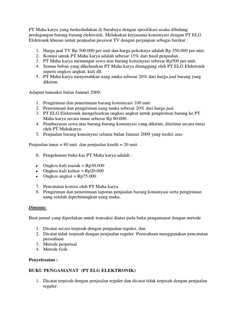 Contoh Soal Penjualan Konsinyasi Dan Jawabannya Pdf Contoh Soal Terbaru