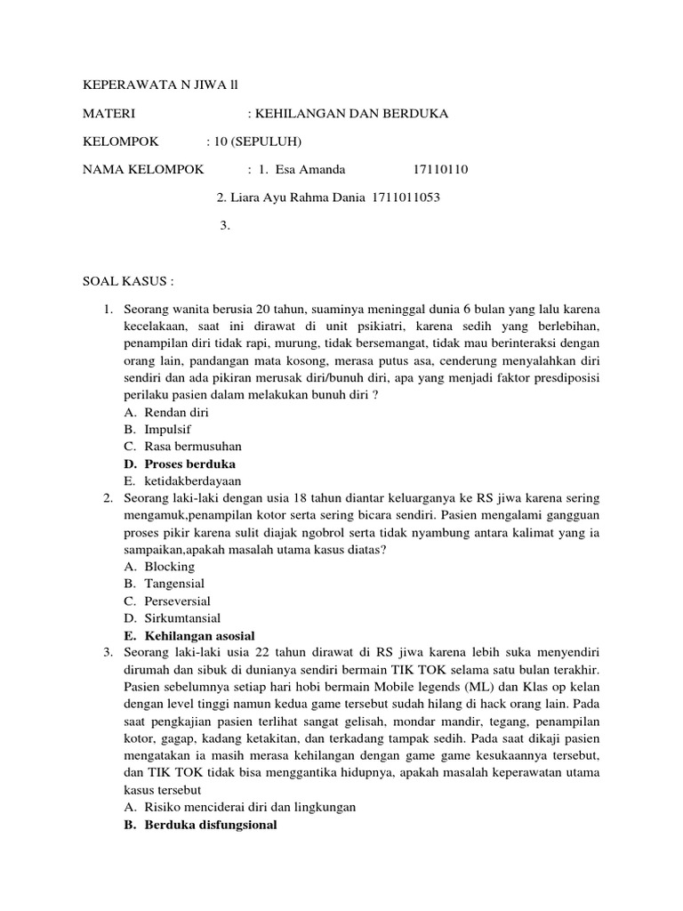 Contoh Soal Kasus Keperawatan Jiwa Beserta Jawabannya Contoh Soal Terbaru