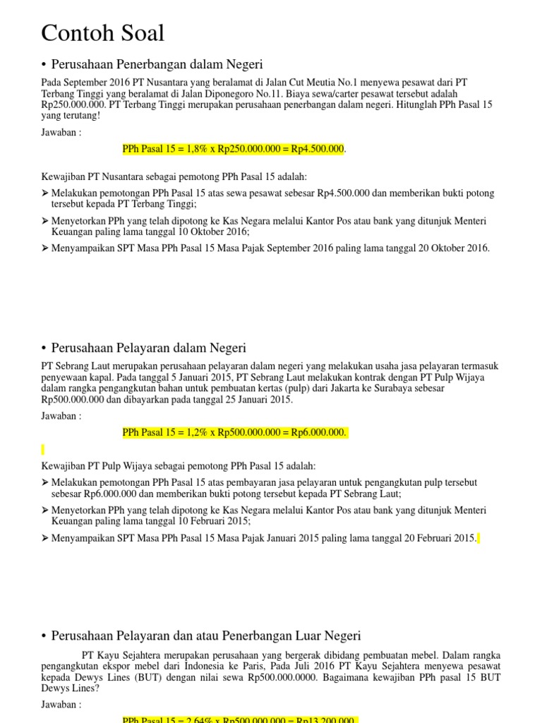 Contoh Soal Dan Jawaban Pph Pasal 15 Dapatkan Contoh